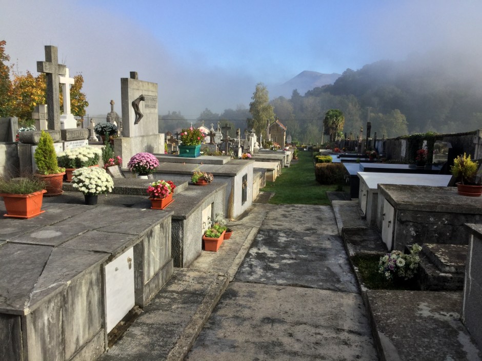 El cementerio de Elizondo (Navarra) es uno de los escenarios donde transcurre la trilogía del Baztán de Dolores Redondo . Emplazado en una elevación, junto a la carretera que conduce a Bearzun, nos ofrece unas hermosas vistas de los montes cercanos.A finales de octubre, la niebla le concedía un cierto aspecto romántico al lugar.